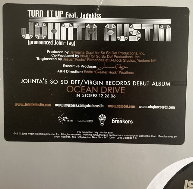 輸入盤中古 Artist:Johnta Austin Title:Turn It Up Label:Virgin Records Ltd. – 094638169918 Format:12" Condition:Record:VG / Jacket:VG 美メロR&Bヒップホップ -収録曲- A1:Turn It Up (Radio Edit*) A2:Turn It Up (Instrumental) A3:Turn It Up (Radio Edit No Rap) B1:Turn It Up (Radio Edit*) B2:Turn It Up (Instrumental) B3:Turn It Up (Radio Edit No Rap)